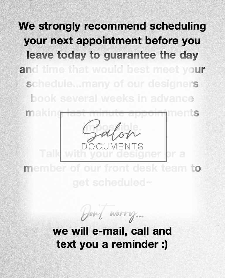 Having your guest prebook their appointment is essential to growing your business. Use this signage to remind your guests why it is important.